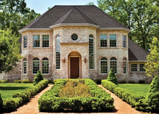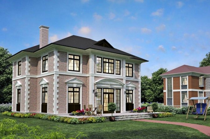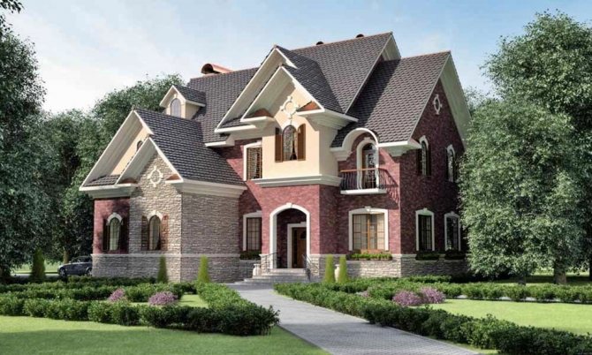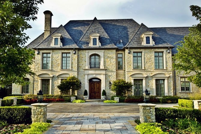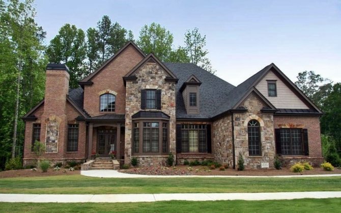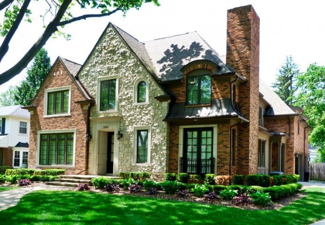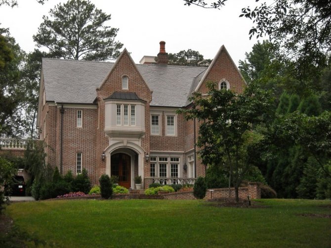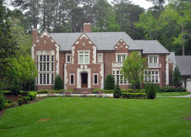 - небольшая по высоте крыша (в отличия от тюдоровского стиля в данном, крыши стараются возводить небольших размеров).