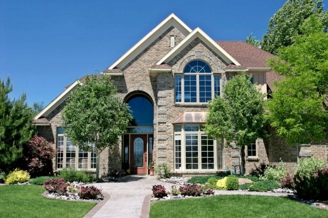 - входной проем в частном доме располагается строго по центру (часто встречаются арочные проемы, которые оформляют из природного камня);