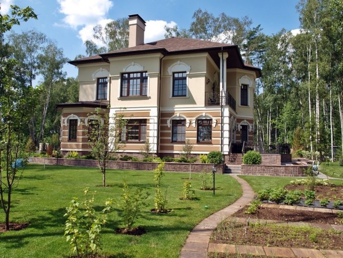 - наличие асимметрии, которая используется при возведении башен частных домов и фронтонов (сегодня делается это редко из-за дороговизны постройки);