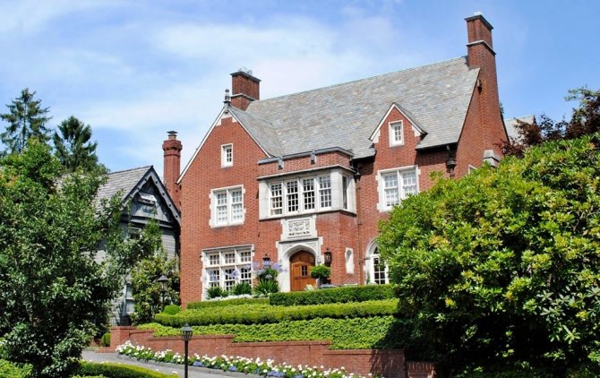 Тюдоровский стиль смотрится очень оригинально. Постройки являются сказочными, привлекают к себе внимание (фото).